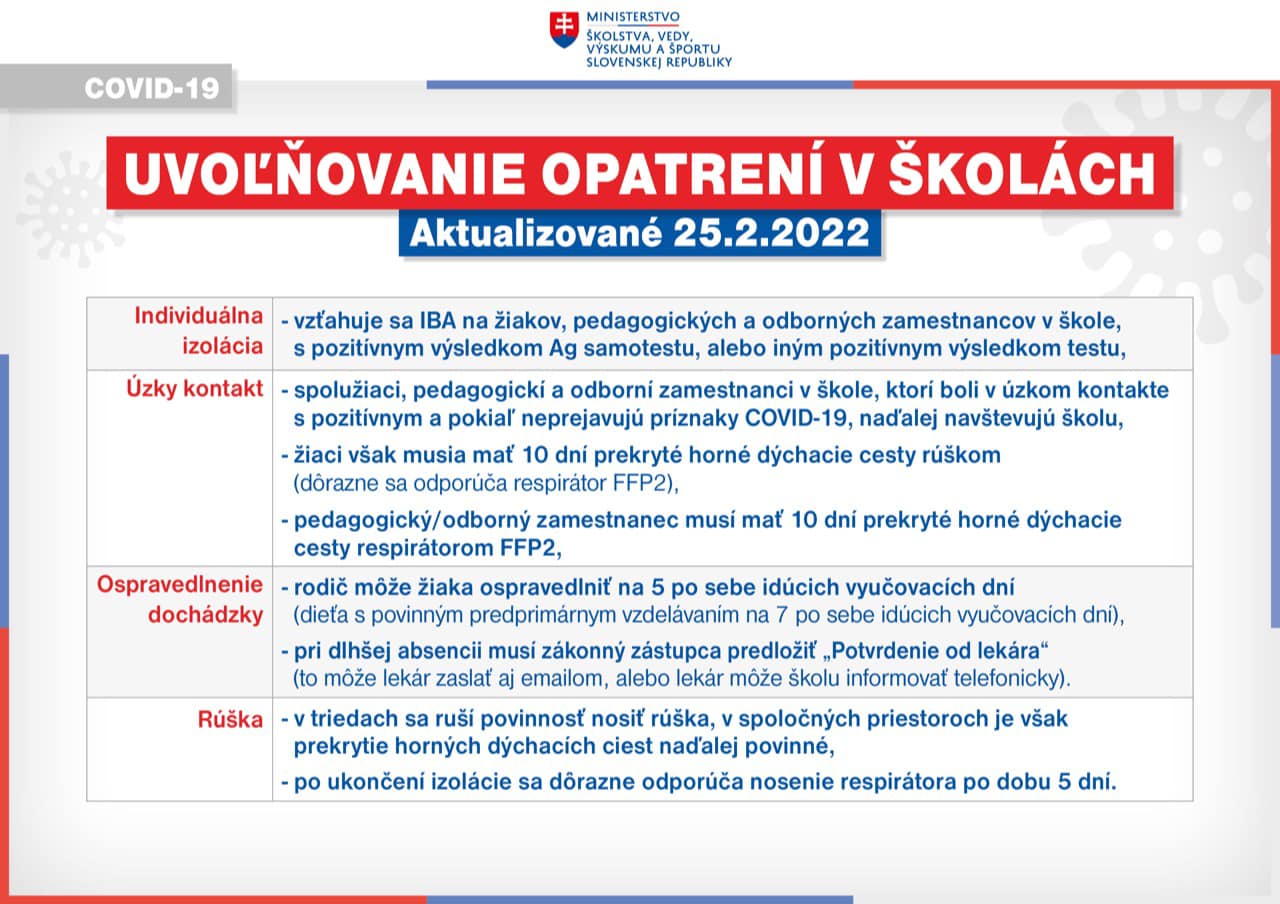 Opatrenia v škole od 28.2.2022