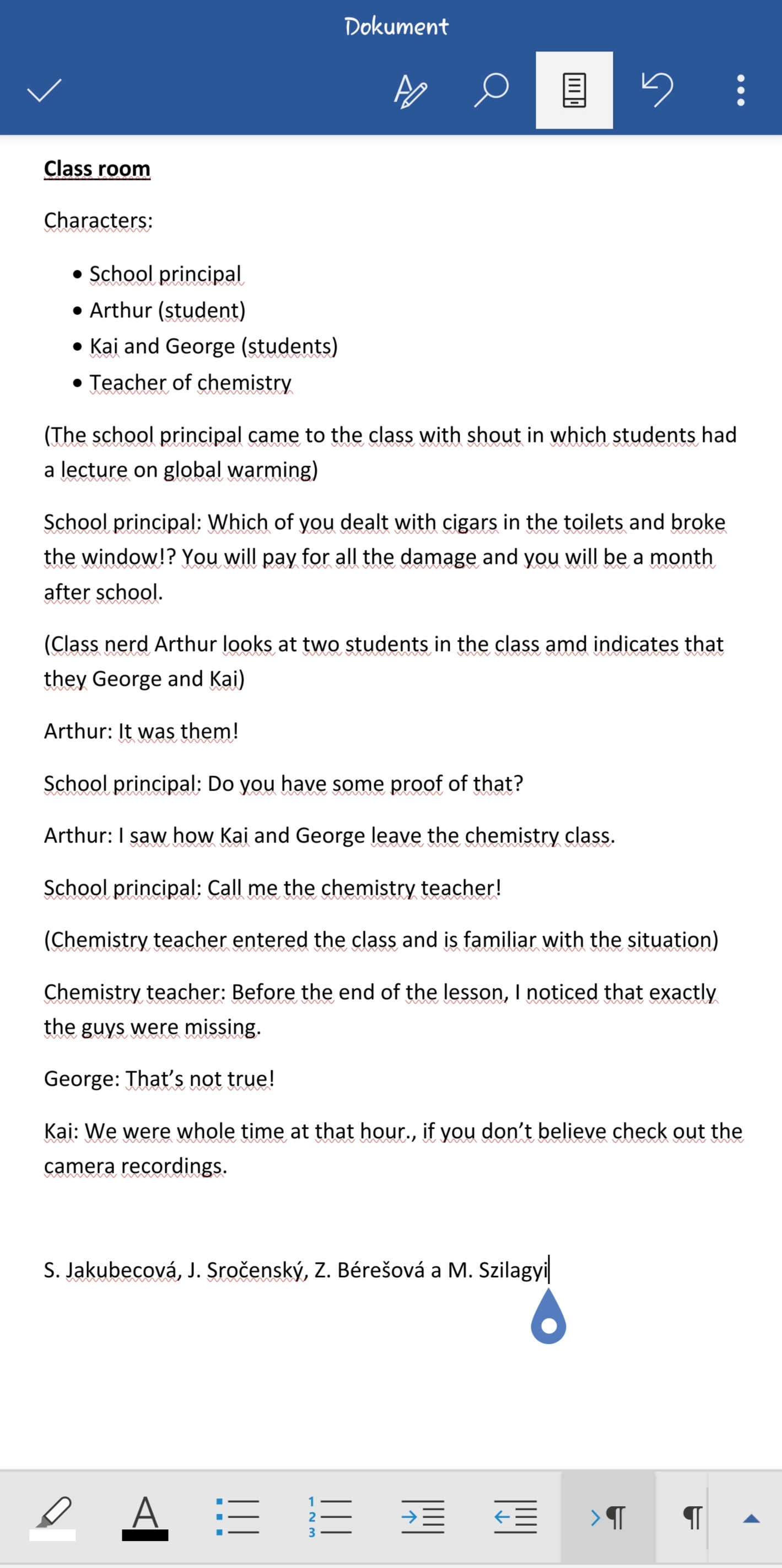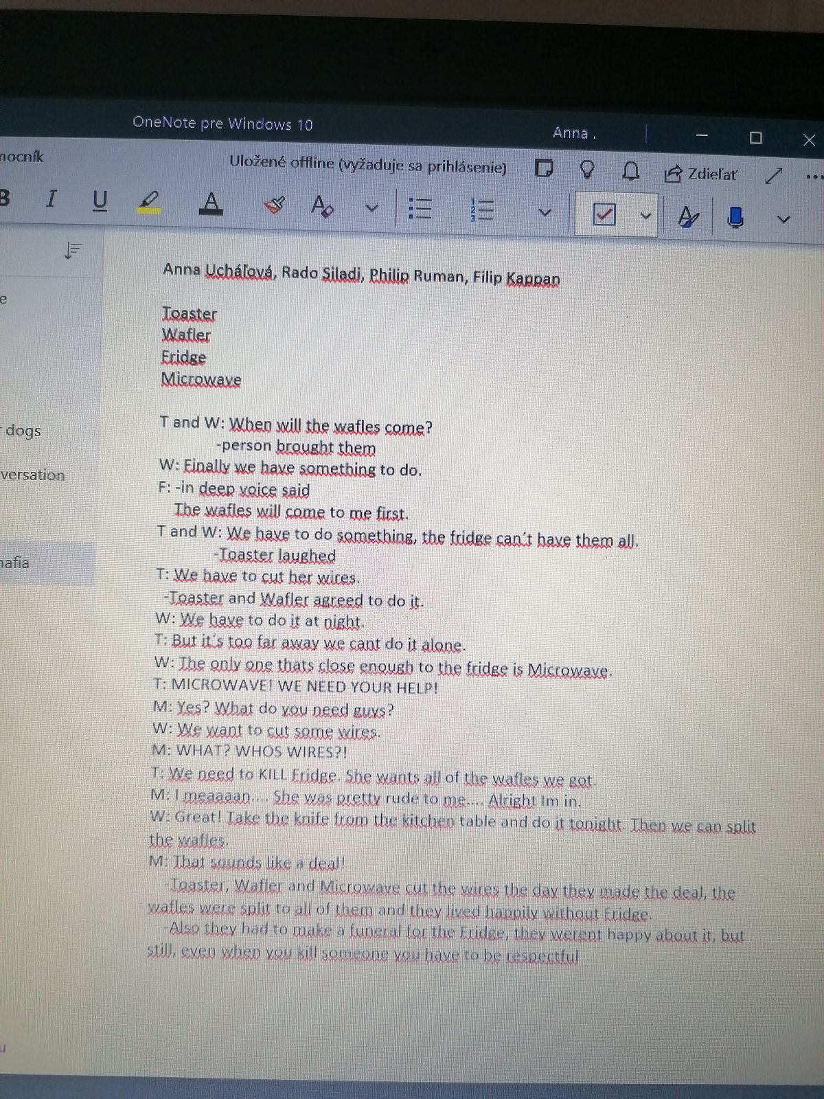 To, že aj naši žiaci sú nesmierne kreatívni, sa môžete sami presvedčiť pri čítaní divadelných scenárov, ktoré tvorili na hodinách konverzácie v anglickom jazyku. Tieto scenáre vytvárali žiaci priamo počas online hodín, keďže platforma Zoom ponúka aj možnosť rozdelenia žiakov do skupín. Žiaci ôsmeho ročníka pracovali prevažne v trojiciach.