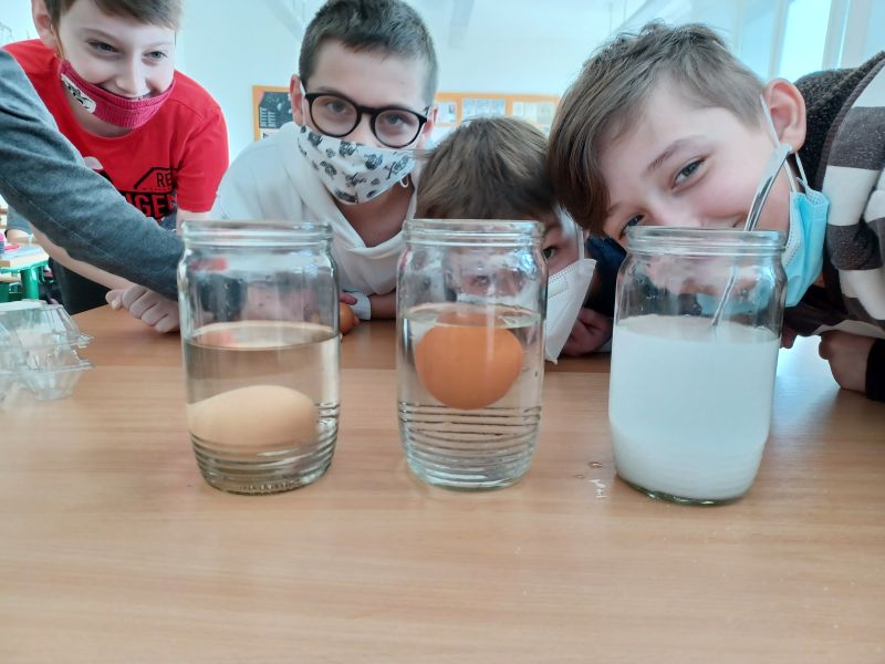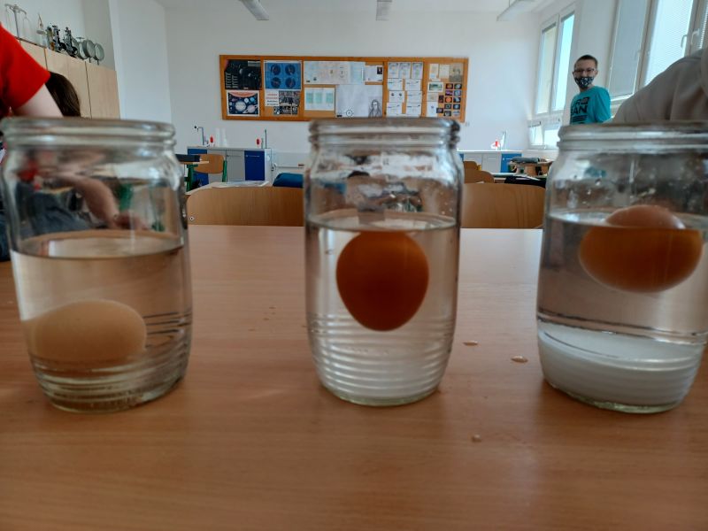Dnes (asi 8.4.2022) sme na hodine fyziky naučili plávať vajíčko.