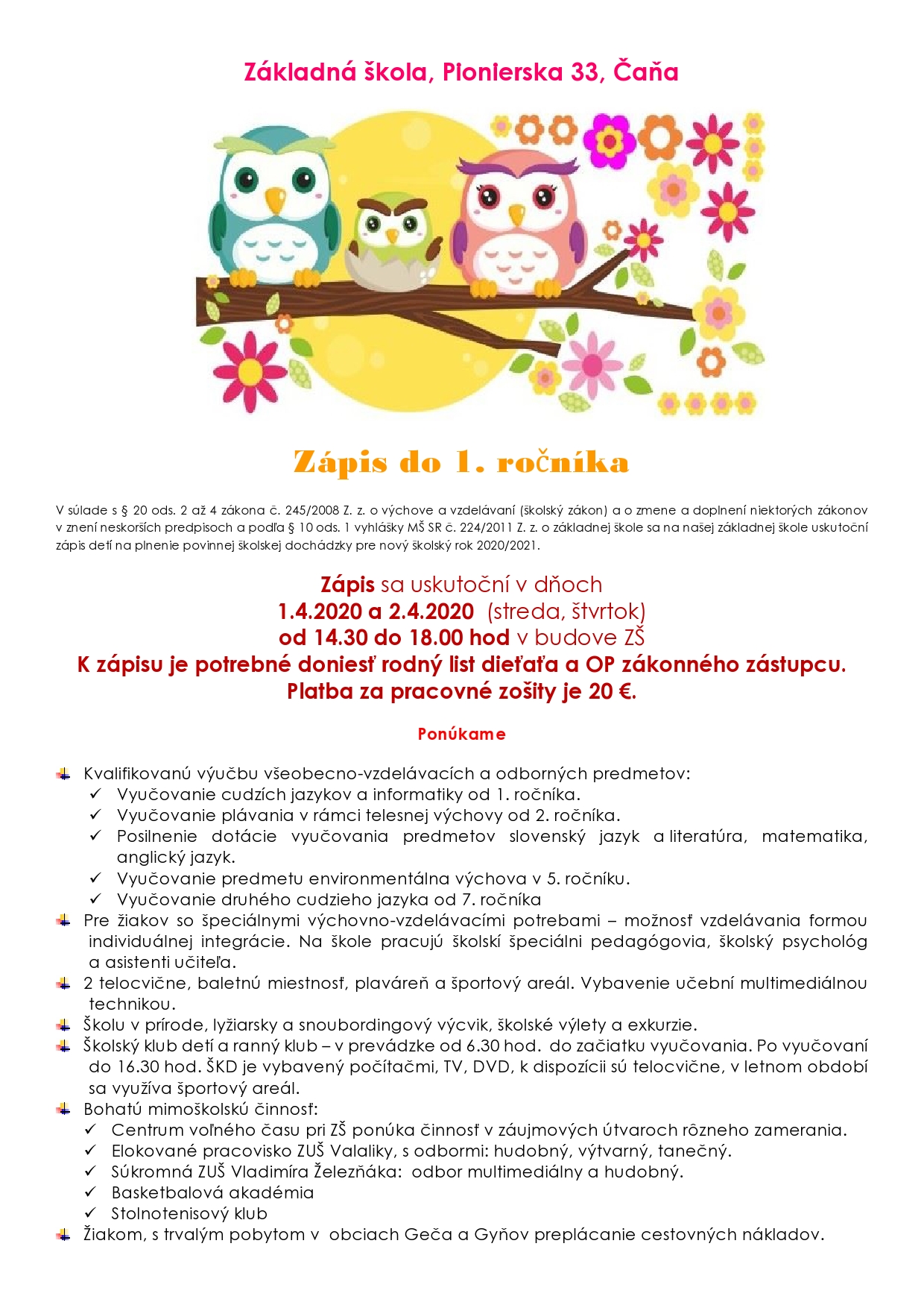 Vážení rodičia,