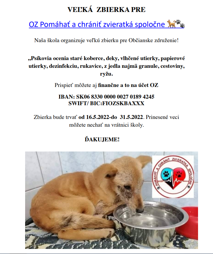 VEĽKÁ ZBIERKA PRE ÚTULOK V NÚDZI!