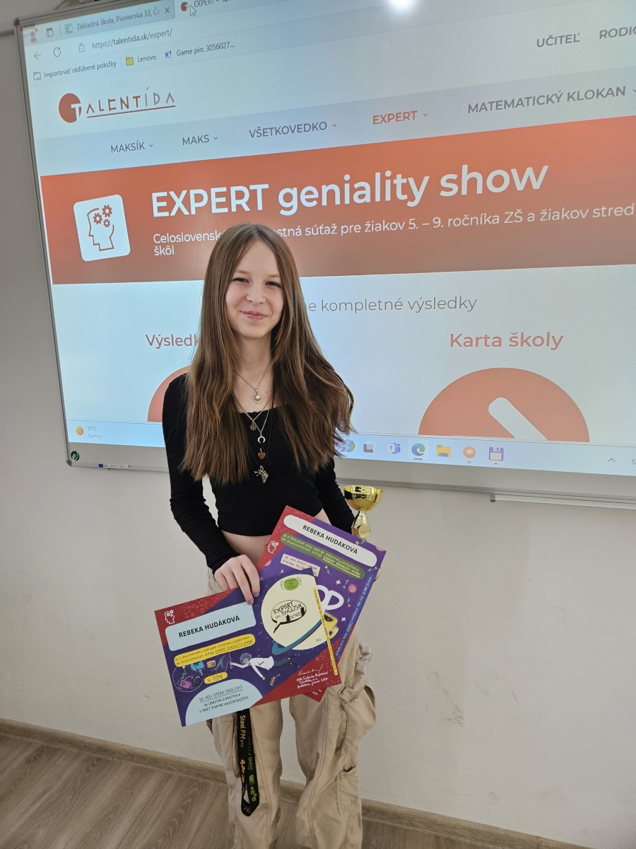 - Rebeka Hudáková zo 7.D sa tiež stala Expertkou v téme „Do you speak English?“ a zároveň i TOP EXPERTKOU!