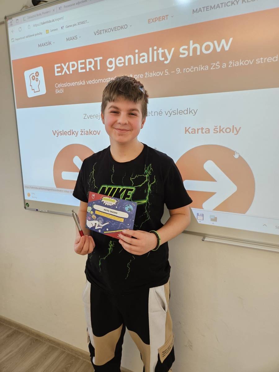- Stanislav Tomko zo 7.C triedy sa stal Expertom v obidvoch témach a to „Do you speak English?“ a „Mozgolamy“ a zároveň sa stal TOP EXPERTOM!