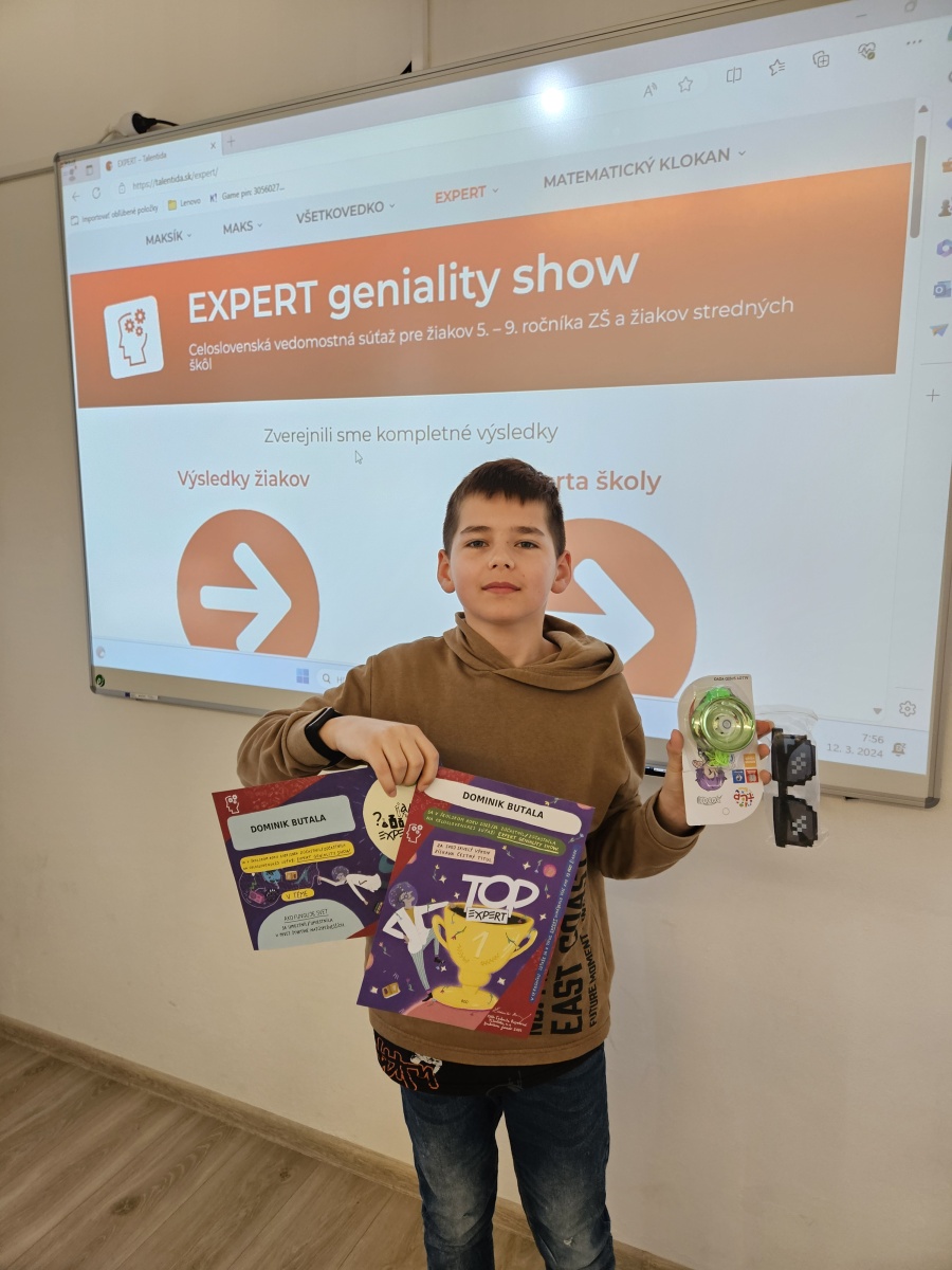 - Dominik Butala zo 6.A triedy sa stal Expertom v téme „Ako funguje svet“ a zároveň sa stal TOP EXPERTOM!