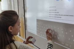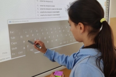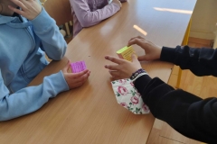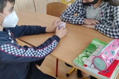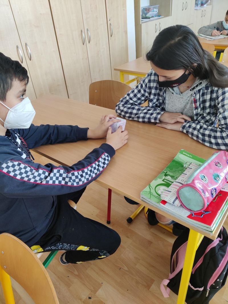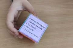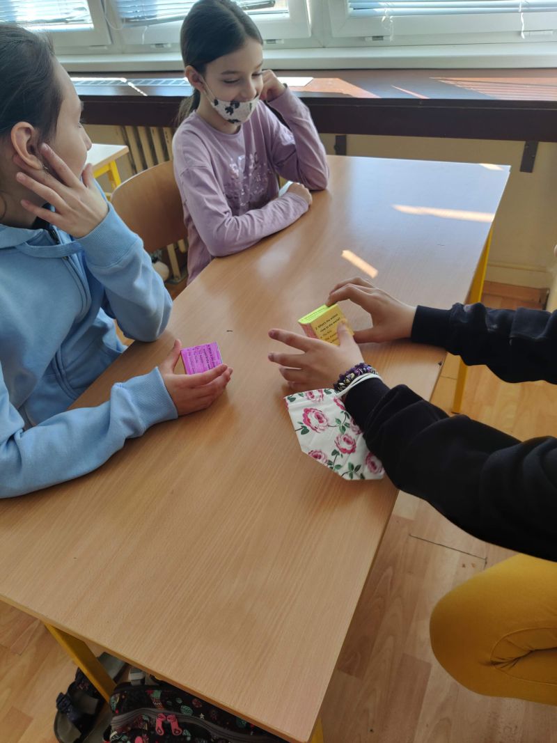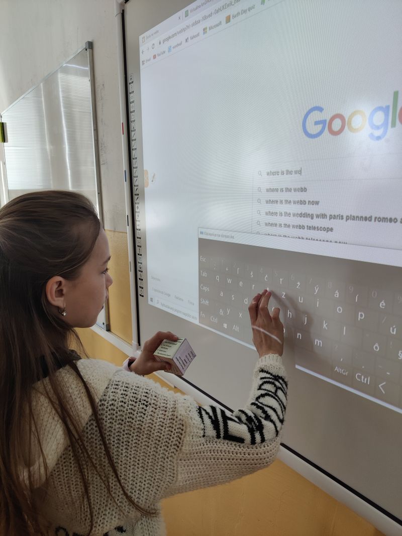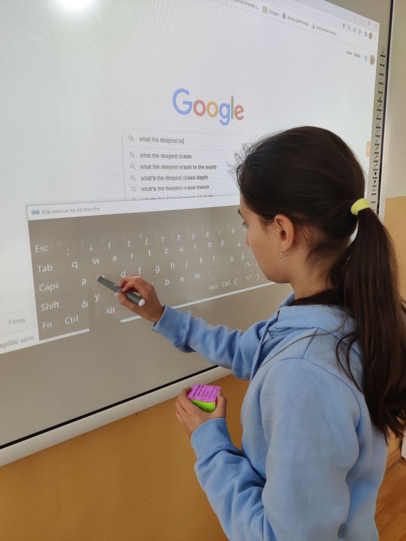 Žiaci si vyrobili hracie kocky, pričom na každej stene kocky bola otázka, napr. What´s the widest river in the world? Keďže žiaci ešte nepoznali odpovede na všetky otázky, využili internet a pomocou interaktívnej tabule si odpovede „vygúglili“. Pozrite si ich v priloženej fotodokumentácii.