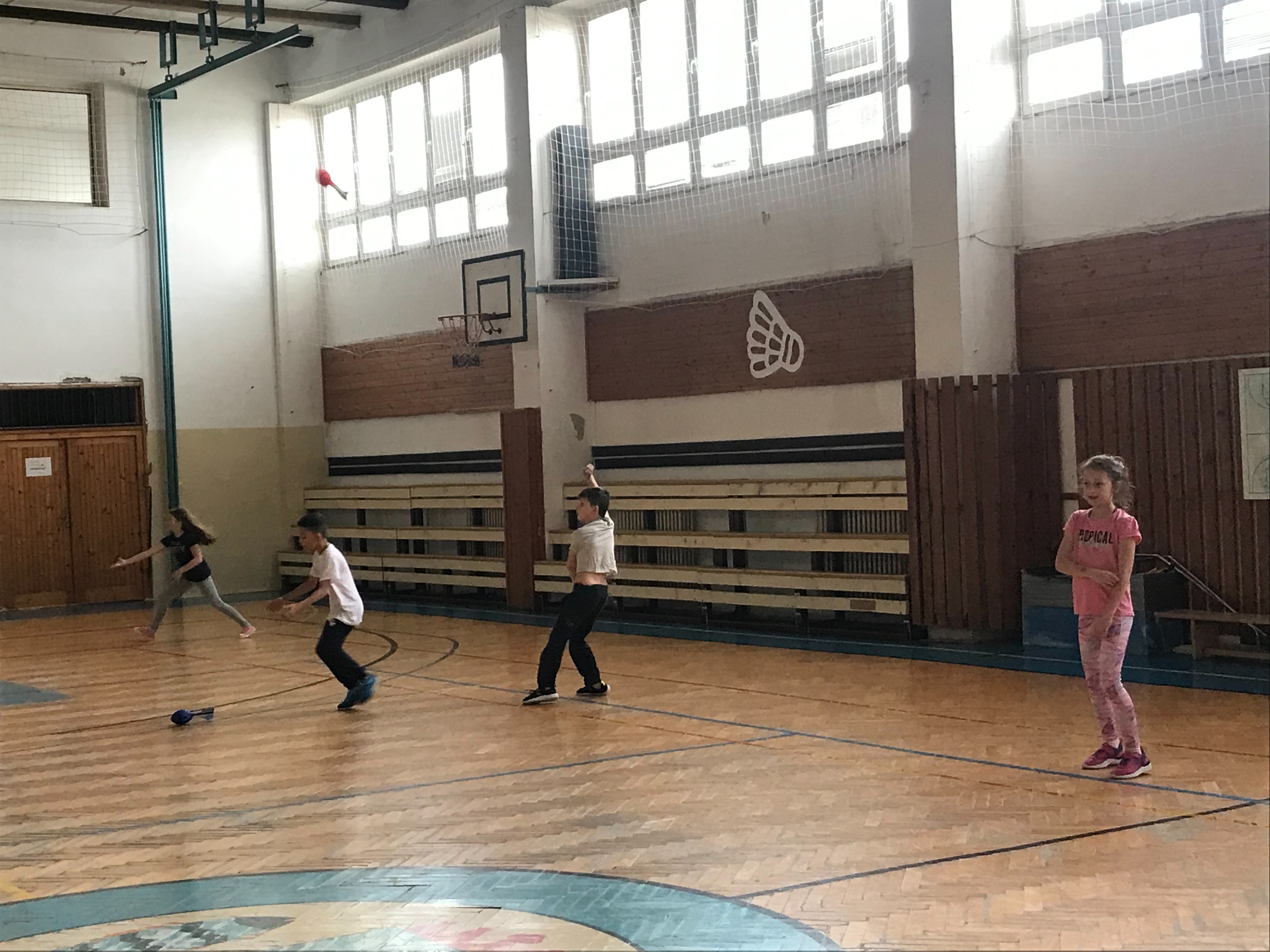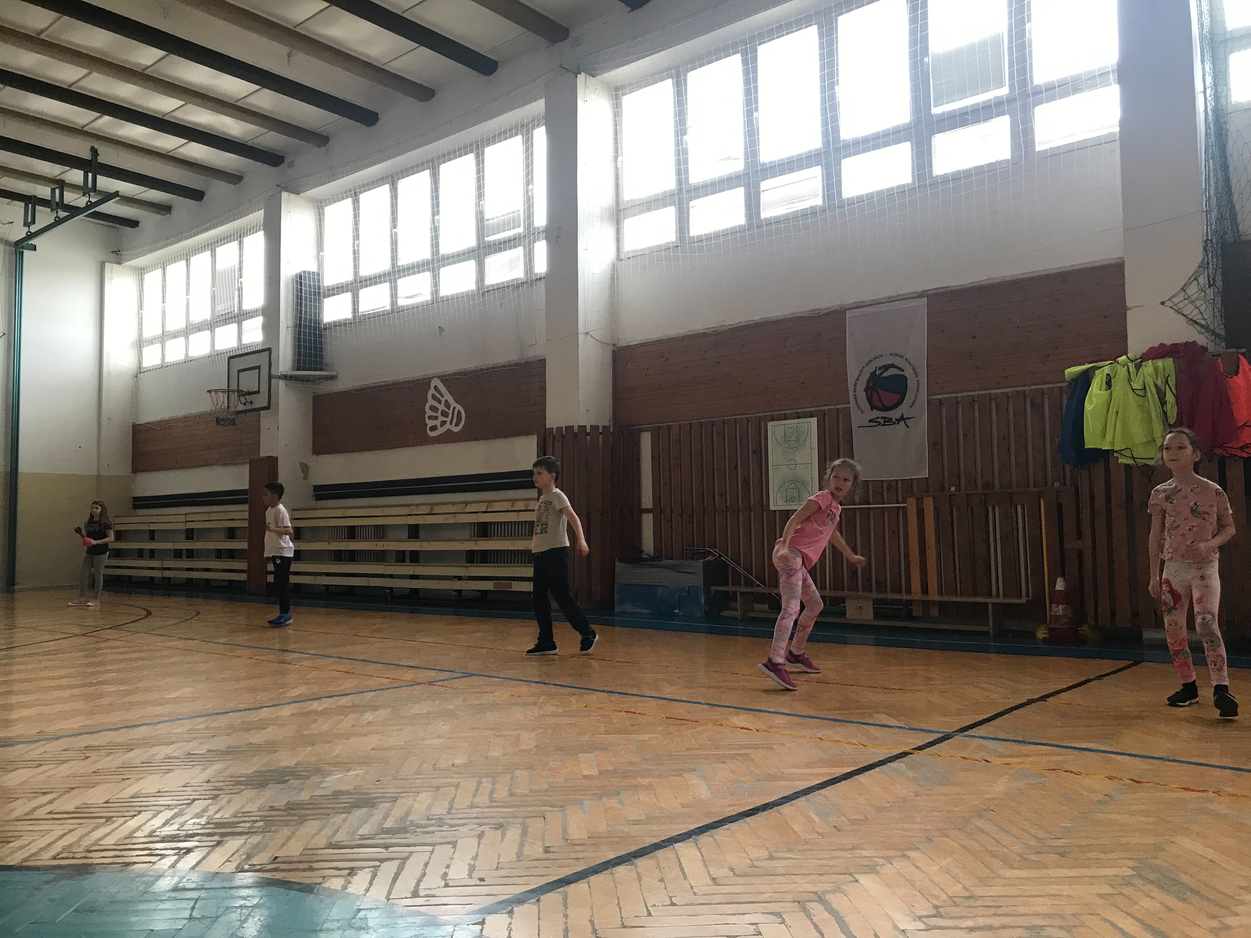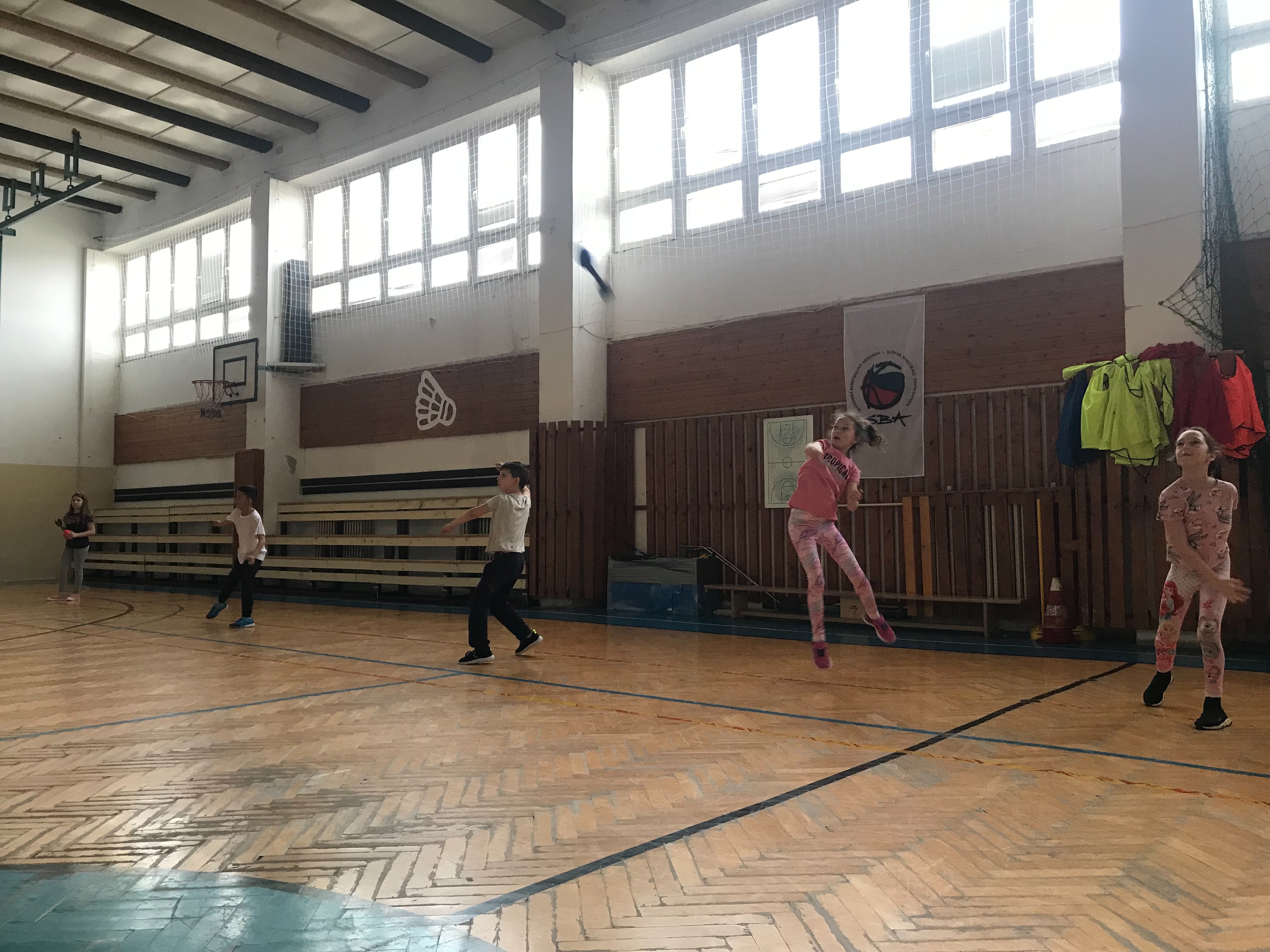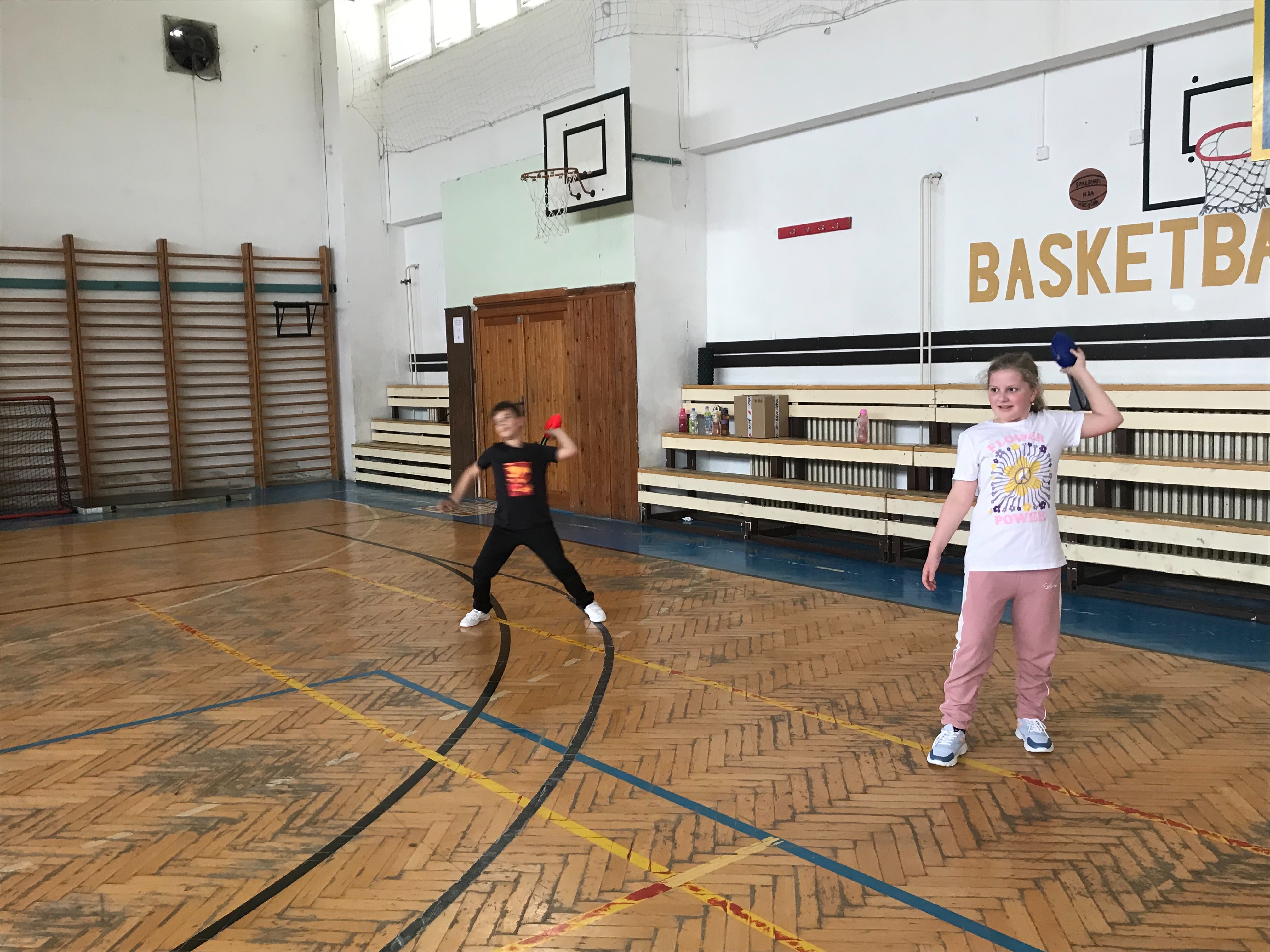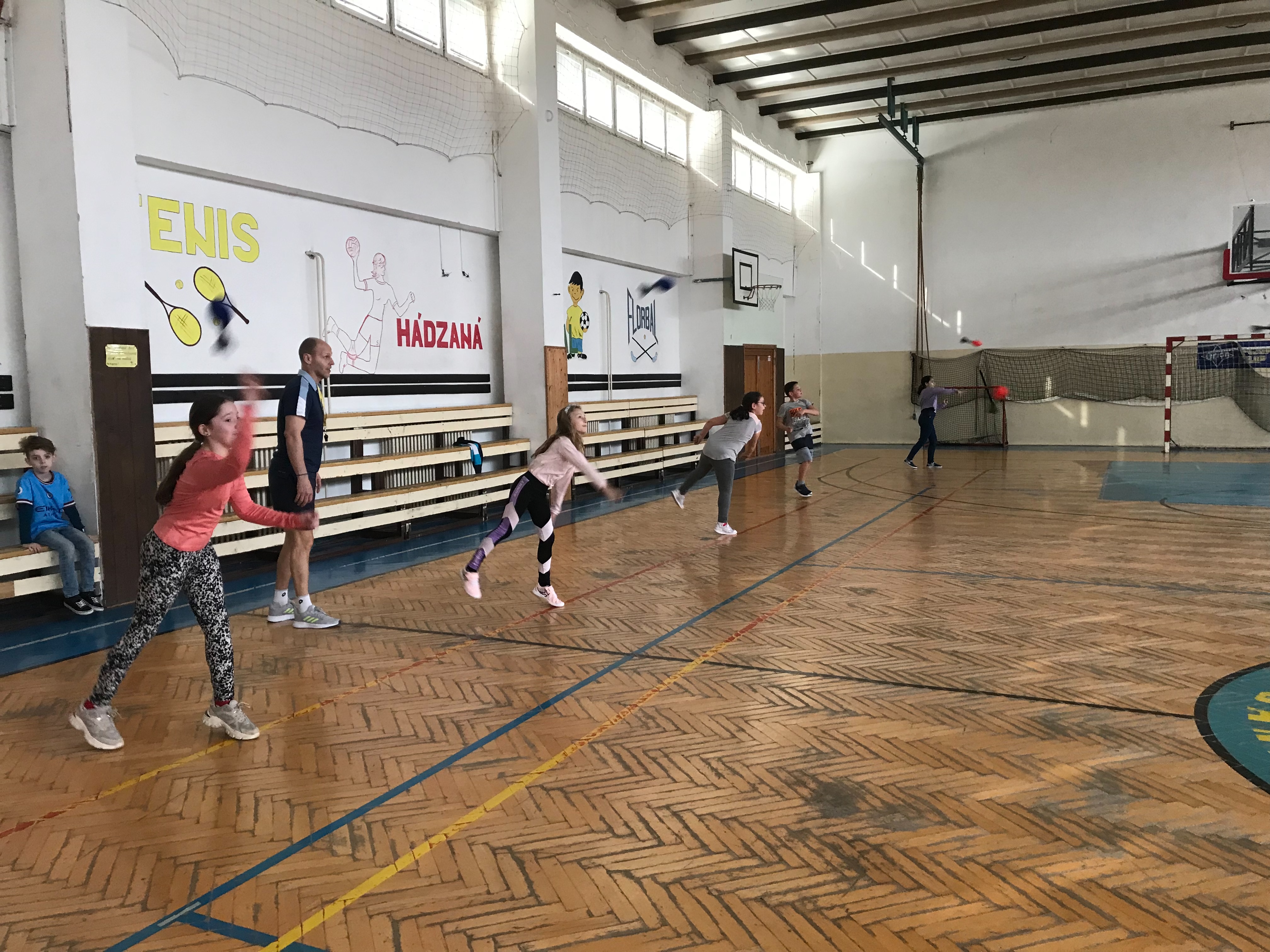 Na fotkách sú žiaci tretieho a šiesteho ročníka, ktorí využívajú rakety NERF . Tieto rakety žiakom slúžia na správny nácvik hodov, držania paže pri hodoch.