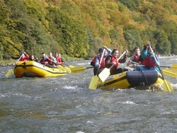 Vo štvrtok 22.6. 2017 sme sa zúčastnili školského výletu v Ružomberku – splav Váhu. Išli sme v 6 miestnych raftoch spolu s inštruktorom. Raftov bolo spolu 6. Inštruktori boli príjemní a zábavní. Naučili nás riadiť čln, urobiť otočku, prejsť plytkou vodou tak, aby sa raft nepoškodil a taktiež ukázali, že je potrebné, aby jeden z členov posádky poctivo určoval pádlom smer člnu. Všetci sme sa úspešne doplavili do cieľa a trvalo nám to približne 2 hodiny. Cesta bola namáhavá, ale zvládli sme ju, aj keď sme si domov priniesli mozole na rukách. Našu výpravu sme ukončili zjedením dobrého obedu v reštaurácii LuMia. Domov sme sa dostali vlakom, kde sme si po plavbe unavení oddýchli. Aj napriek svalovke od pádlovania výlet neľutujeme a išli by sme si plavbu po Váhu a cez krásnu dedinu Ľubochňa zopakovať.