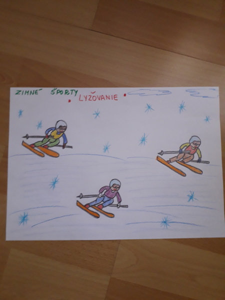 Keďže sa pani zima ukázala v plnej paráde, nasnežila nám a poslala nám aj mrazy, nakreslili deti aj zimné športy, ktoré majú radi. Deti nezaháľajú a kreslia aj v čase dištančného vyučovania.