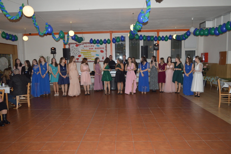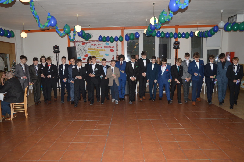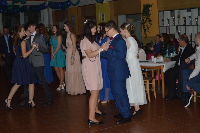 Zúčastnilo sa ho 42 žiakov deviateho ročníka, hosťami boli rodičia, vedenie školy, triedni učitelia. Oficiálny program sa začal krátko po 18tej hodine, pozostával z tanečných ukážok žiakov. Žiaci predviedli valčík, polku, čardáš, jive, cha-cha, salsa a tango.