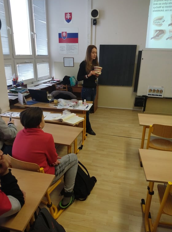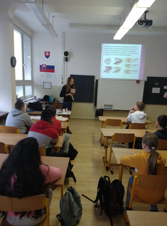 Dňa 27.1.2020 sa uskutočnila na našej škole prednáška venovaná zdraviu a hygiene našej ústnej dutiny. Prednášku viedla Mgr. Gregová, z regionálneho úradu verejného zdravotníctva. Okrem nových informácií a teoretických vedomostí o našich zuboch si každý žiak 7.ročníka priniesol svoju zubnú kefku, s ktorou si nacvičil správnu techniku čistenia zubov. A ako by sme zhrnuli jej rady?